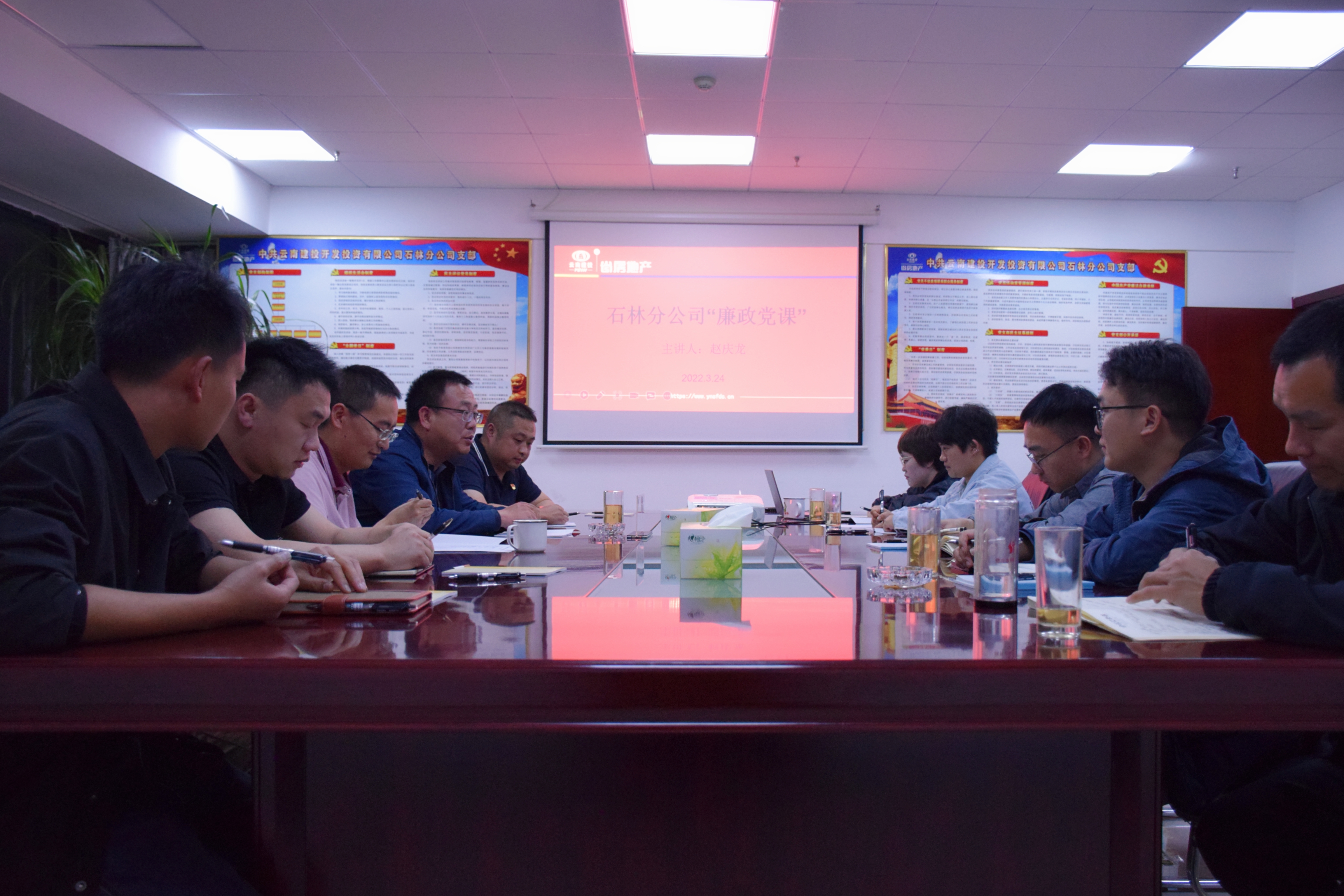 3月22日、24日,公司副總經(jīng)理趙慶龍分別為玉溪高鐵新城項(xiàng)目、石林分公司干部職工講授廉政黨課。