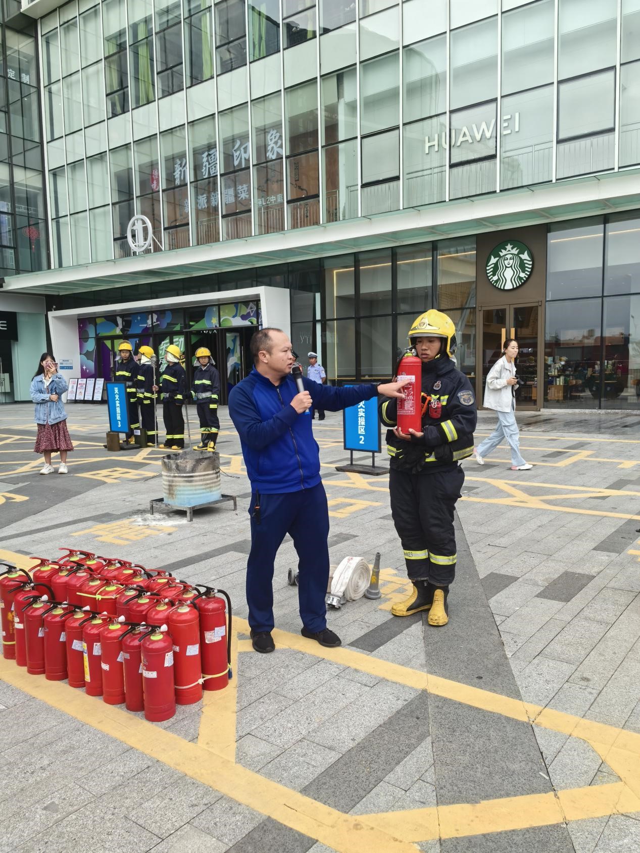 上午8時(shí),演練正式開始,現(xiàn)場(chǎng)模擬商場(chǎng)突發(fā)火災(zāi),火勢(shì)迅速蔓延,現(xiàn)場(chǎng)有大量濃煙。隨著警報(bào)聲響起,商場(chǎng)內(nèi)的廣播系統(tǒng)立即啟動(dòng),清晰傳達(dá)了火情信息和疏散指令。商場(chǎng)工作人員迅速行動(dòng),按照既定的應(yīng)急預(yù)案,有序引導(dǎo)人員從最近的疏散通道撤離至安全區(qū)域,消防救援車迅速到場(chǎng)開展先期處置,聯(lián)防單位迅速集結(jié)確保道路暢通,第一時(shí)間救治傷員等工作。大理市消防大隊(duì)向演練人員進(jìn)行消防救援知識(shí)科普,詳細(xì)講述滅火器的操作及注意事項(xiàng),在進(jìn)行實(shí)景滅火演練后,消防大隊(duì)對(duì)舉高噴射消防車用途構(gòu)造、適用災(zāi)害類型及操作要求進(jìn)行了細(xì)致講解,消防隊(duì)員在指揮官的統(tǒng)一調(diào)度下,迅速將舉高噴射消防車駛?cè)腩A(yù)定位置,開始了緊張有序的操作。消防車的高壓臂緩緩伸展,直至達(dá)到模擬火點(diǎn)的最佳射擊角度。隨后,強(qiáng)大的水流準(zhǔn)確無誤地?fù)糁辛四繕?biāo)區(qū)域,有效壓制了火勢(shì)。整個(gè)演練過程展現(xiàn)了高度的專業(yè)性和緊密的合作精神,演練活動(dòng)圓滿結(jié)束。