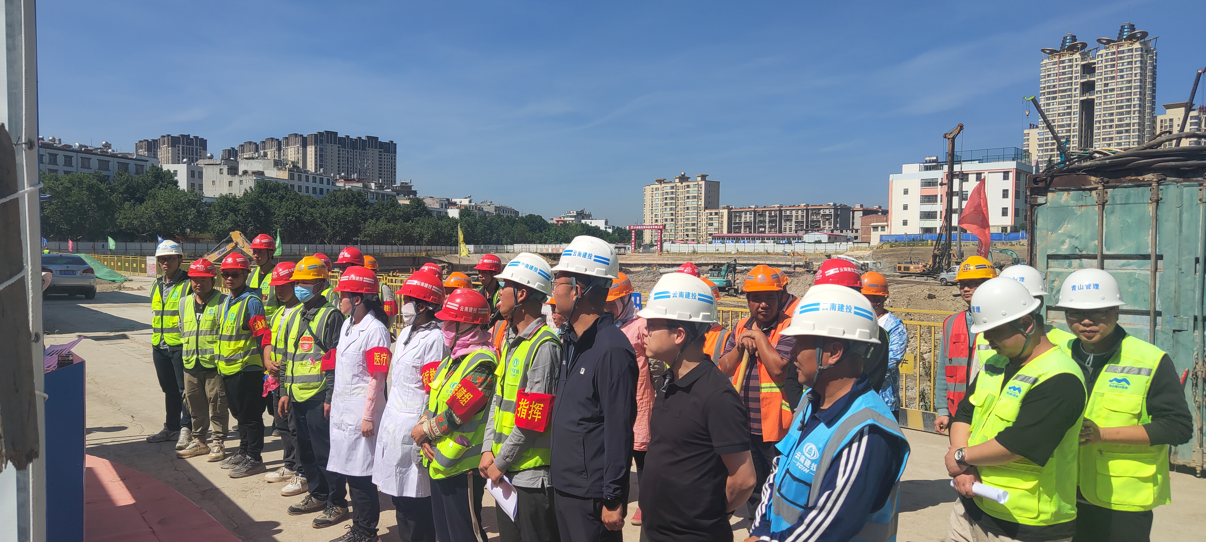 5月17日上午,曲靖片區(qū)東門街項目開展汛期演練。曲靖片區(qū)支部書記、工會主席徐小勇,副總經(jīng)理張文麟、龔智及各參建單位相關(guān)人員參加演練。