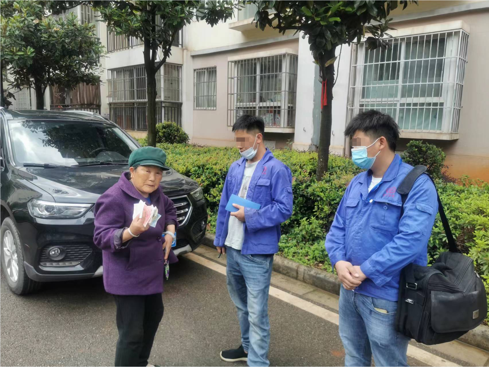 6月9日11時許,安寧西鐵小區(qū)物業(yè)服務(wù)中心辦公室走進(jìn)一個步履蹣跚的老人,咨詢小區(qū)里是不是有燃?xì)夤镜墓ぷ魅藛T換燃?xì)夤???头藛T在認(rèn)真聽取老人描述事件經(jīng)過后立馬覺得不對勁——燃?xì)夤緵]有和物業(yè)中心對接過,老人一定是上當(dāng)受騙了??头鞴芰⒓唇猩瞎こ倘藛T去老人所說的樓棟區(qū)域進(jìn)行逐一排查,最終在小區(qū)8棟3單元門口找到2名身穿藍(lán)色工作服的人員,客服主管立馬叫住2人,同一時間撥打了110報警電話。經(jīng)警察到場后查實,2人假借安寧燃?xì)夤镜拿x,上門為住戶檢查設(shè)備,高價售賣燃?xì)夤???头鞴茈S即將此事件發(fā)至業(yè)主群提醒住戶,有一名住戶看到信息后也立即趕來。警察責(zé)令2名可疑人員為業(yè)主退還錢財并帶走做進(jìn)一步審查,此事件為2名業(yè)主挽回經(jīng)濟(jì)損失508元。
