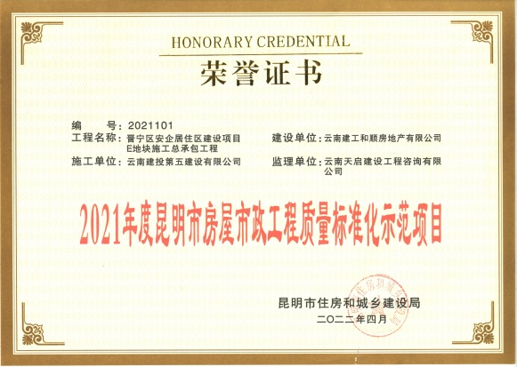 近日,由和順公司開發(fā)建設(shè)的安居和苑項目,獲昆明市住房和城鄉(xiāng)建設(shè)局頒發(fā)的“2021年度昆明市房屋市政工程安全生產(chǎn)標(biāo)準(zhǔn)化工地”和“2021年度昆明市房屋市政工程質(zhì)量標(biāo)準(zhǔn)化示范項目”榮譽證書。