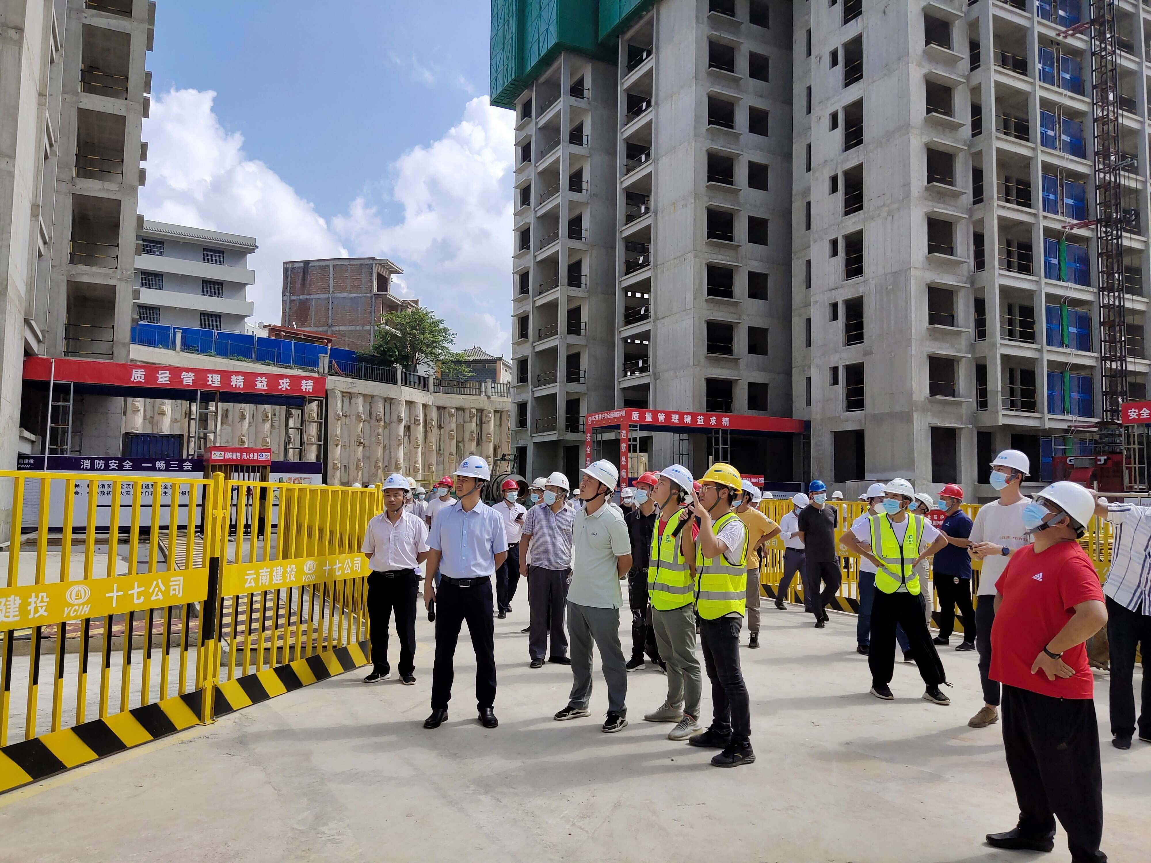 7月28日上午,廣南縣建設(shè)施工領(lǐng)域創(chuàng)衛(wèi)工作暨安全生產(chǎn)和消防安全現(xiàn)場觀摩會(huì)在文山分公司承建的棚戶區(qū)改造安置房建設(shè)項(xiàng)目現(xiàn)場召開。廣南縣縣委常委、常務(wù)副縣長冉永富出席觀摩會(huì),縣住房和城鄉(xiāng)建設(shè)局相關(guān)負(fù)責(zé)人,全縣各建設(shè)、施工、監(jiān)理企業(yè)代表約五十余人參與現(xiàn)場觀摩,并就消防安全管理、主體責(zé)任落實(shí)、標(biāo)化工地、文明施工等方面展開經(jīng)驗(yàn)交流。