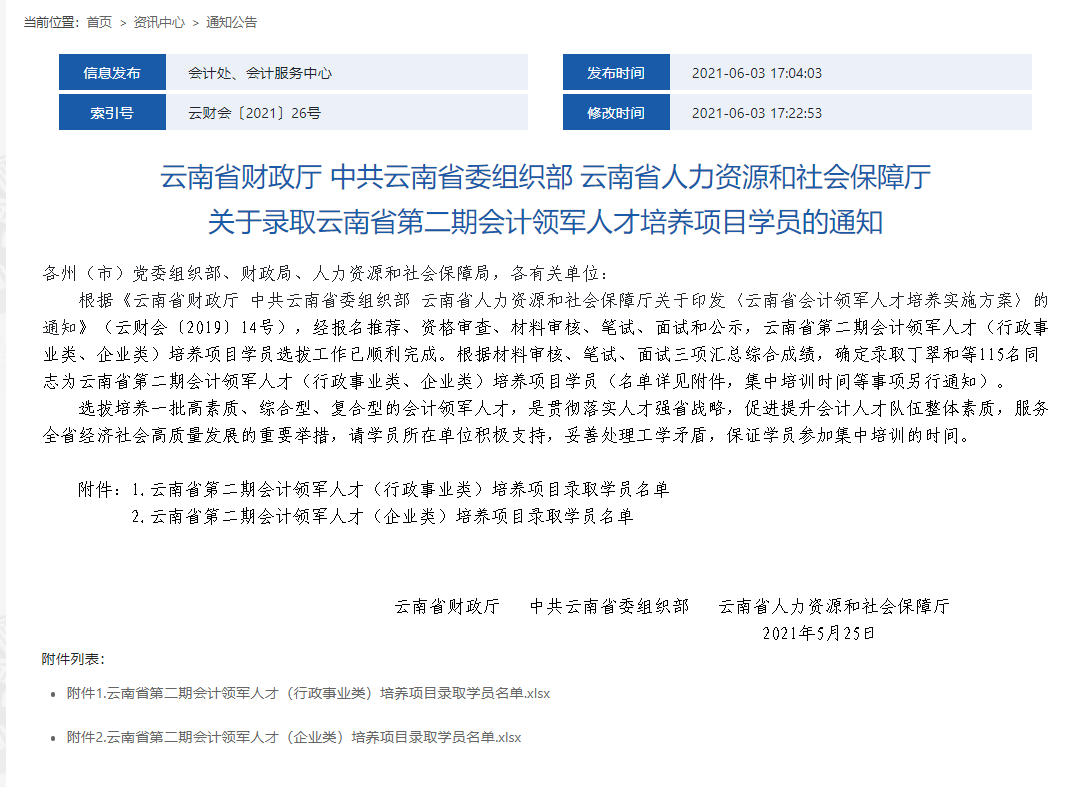 近日,云南省財(cái)政廳、中共云南省委組織部、云南省人力資源和社會保障廳發(fā)布關(guān)于錄取云南省第二期會計(jì)領(lǐng)軍人才培養(yǎng)項(xiàng)目錄取學(xué)員名單,大業(yè)公司財(cái)務(wù)總監(jiān)何武經(jīng)過報(bào)名推薦、資格審查、材料審核、筆試、面試和公示等環(huán)節(jié)嚴(yán)格選拔,成功入選會計(jì)領(lǐng)軍人才培養(yǎng)項(xiàng)目。