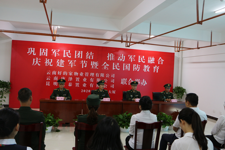 建軍節(jié)到來之際,康澤公司、通泰公司與云南好的家物業(yè)管理有限公司在春溪大廈開展國防教育聯(lián)建活動。
